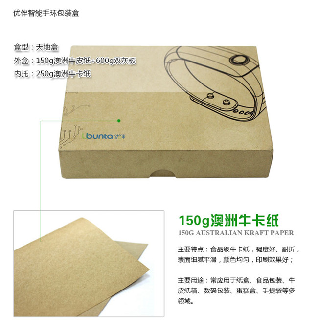 精制牛皮紙優(yōu)伴智能手環(huán)牛皮紙?zhí)斓睾邪b