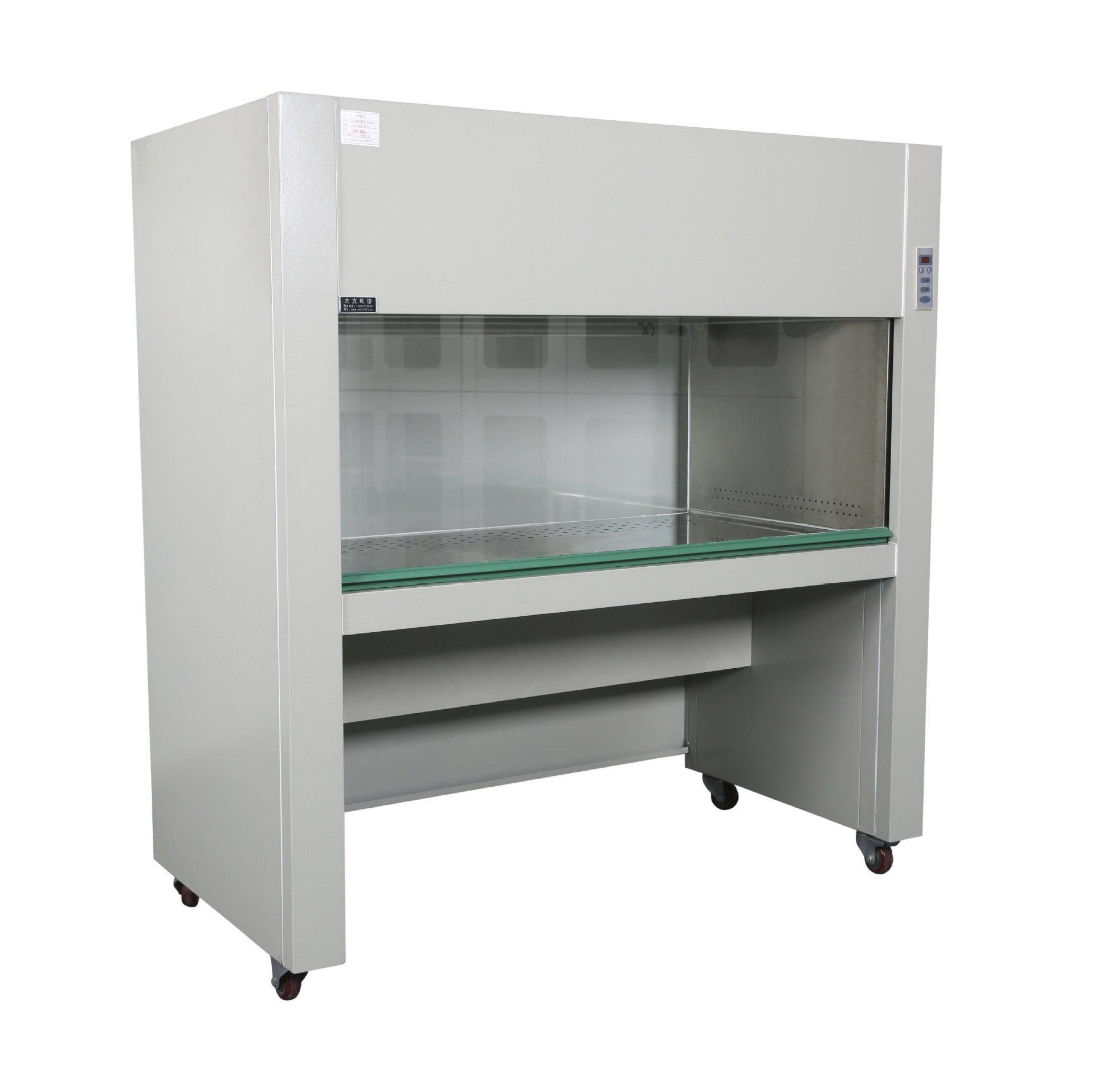 5、超凈工作臺面配有可調(diào)節(jié)高度的腳輪,移動方便;